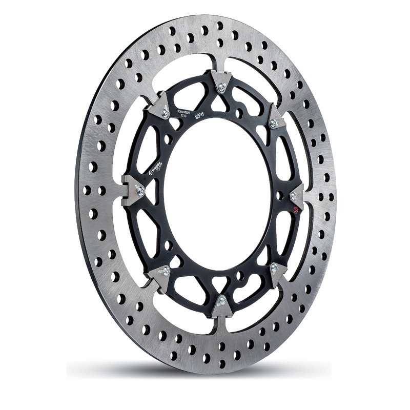 Derived from the experience gained in SBK and MotoGP, the brand new T-Drive disc is the natural technical evolution of latest generation Brembo competition brake discs. The special shape of the 8 “T” pins on the disc and the eight shapes on the braking torque dragging system housing are the innovative element which strongly differentiates the new T- Drive from discs with cylindrical bushing systems. In fact, as a result of specific studies into process and machining tolerances, this unique configuration transfers braking torque more effectively, providing improved resistance to thermo-mechanical stress, especially in extreme conditions of use such as racing.