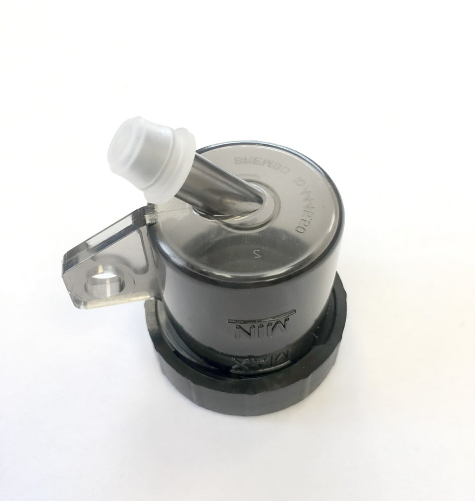 BREMBO REMOTE RESERVOIR 15cc VERTICAL MOUNT 45 DEG OUTLET * SMOKED *