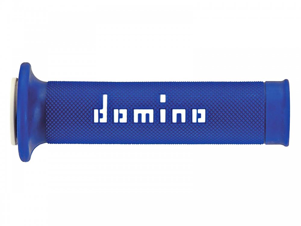 DOMINO ROAD RACING GRIPS BLUE / WHITE OPEN ENDED D.22mm L.126mm