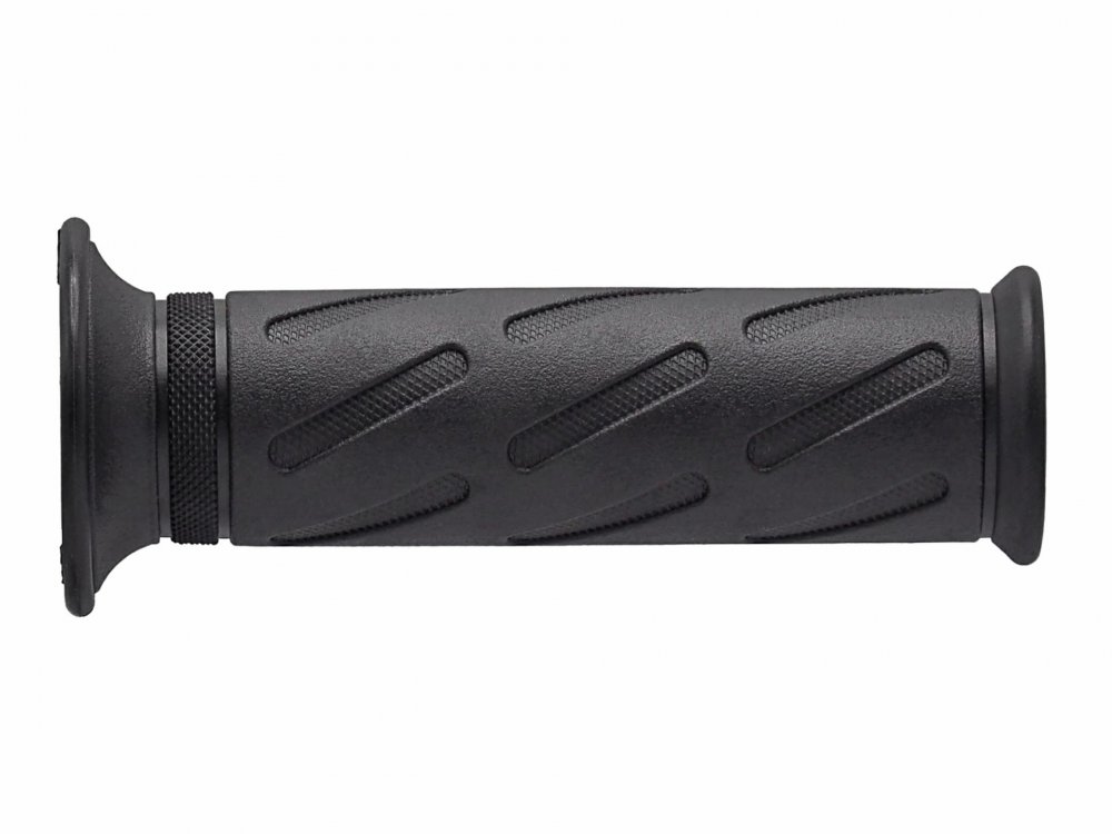 Material: Thermoplastic Colour: Black Length: 124 left/123 right Grip end: Open Diameter Handlebars/Throttle Tubes: 22/26 mm Flange diameter: 50 mm Diameter installed grips : 32 mm