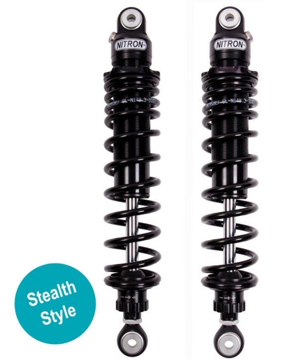 STYLE OPTIONS Having the right look for a bike with twin shocks can sometimes be as important as the performance upgrade so please choose from 3 distinct style options to match your bike. Our Classic (Titanium/Black), Stealth (Stealth/Black) & NTR (Titanium/Blue) styles are all built using the same high grade hard-anodised parts and polished chrome piston rods, but with more refined colour choices to suit any bike.