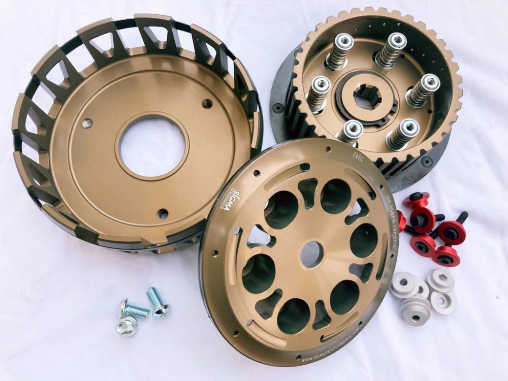 The original 'modern era' Suzuki mini twin has become a racing and track-day favourite. Adding a slipper clutch puts this bike in a position to compete on track against many much more powerful bikes. However the standard clutch is very small. This is the 'racing' version which adds two more plates (one friction and one steel – not supplied) to the clutch pack to try and boost the clutches power capacity as much as possible.