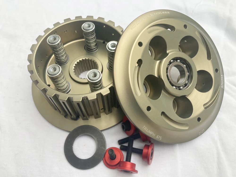 The clutch uses standard springs (preferably new) and the standard clutch pack. The clutch provides all the normal slipper clutch benefits with better over-rev protection and improved chassis stability going into corners.
