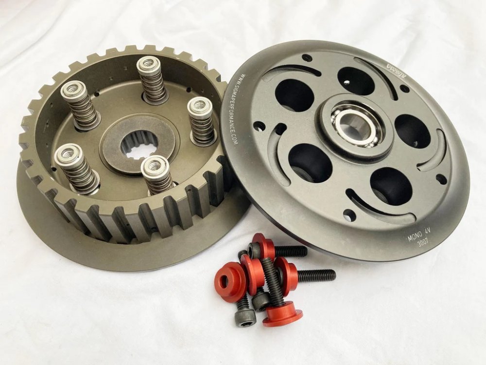 The clutch uses standard springs (preferably new) and the standard clutch pack. The clutch provides all the normal slipper clutch benefits with better over-rev protection and improved chassis stability going into corners.