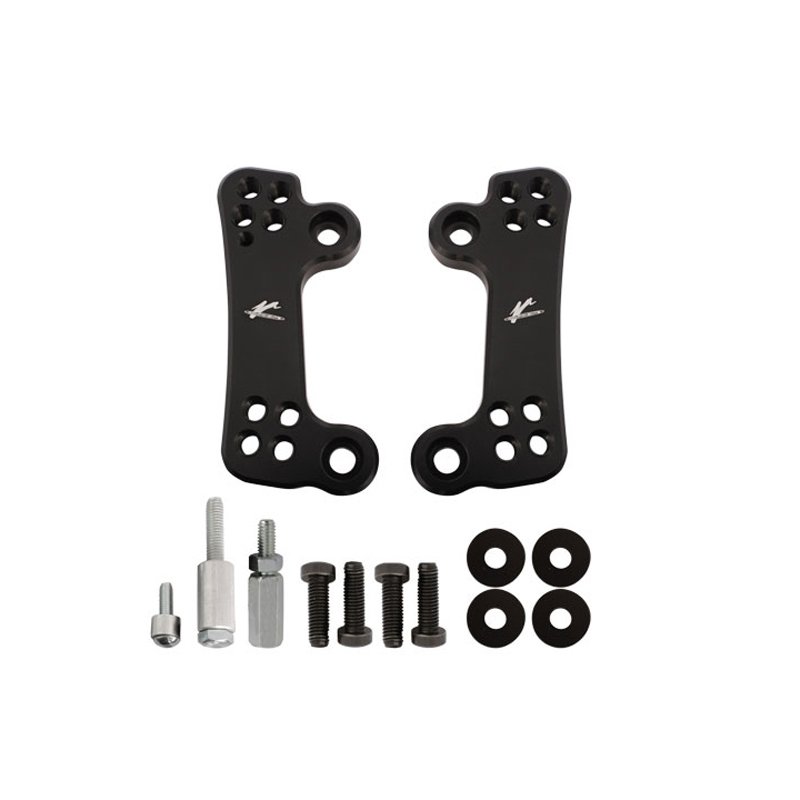 Rearsets adjuster kit allows to change original rearsets position till 25/30 mm rear and high by 2/4 different set-up points to find the best feeling. Entirely made with CNC machinery in Ergal 7075 T5 alloy are provided with a shift rod extension to avoid any modify during assembly. They are available only in black color