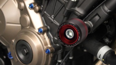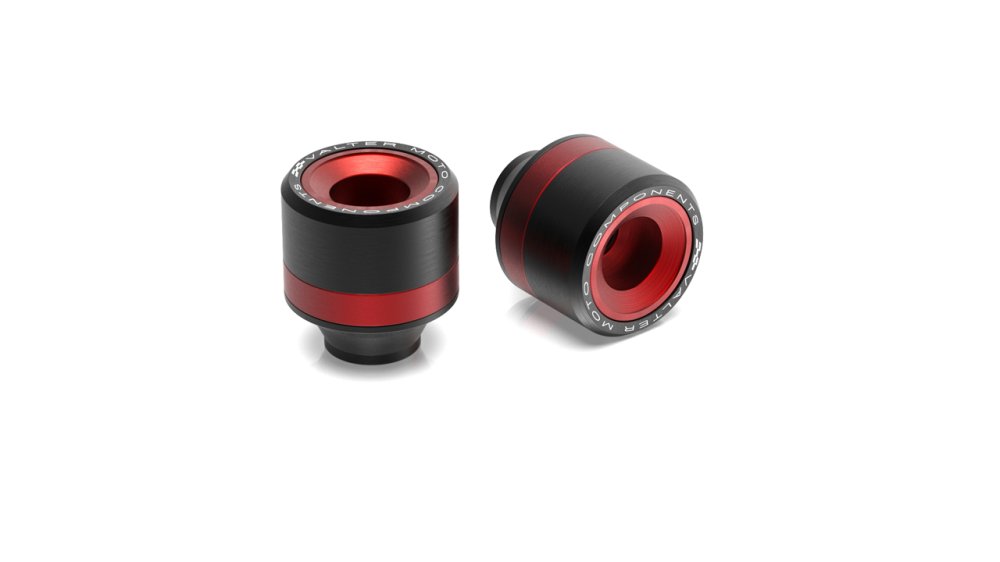 The new frame protectors of EASY line offers excelet protection by minimizing the possible damage to the frame due to shocks or falls. It is made in aluminum and rings, available in different colors, confer a considerable aesthetic impact and a unique style. Colour Black and Red. They fit on the bike using dedicated fixing kit (PTA##).