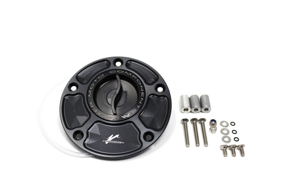 VMC Racing fuel tank caps are entirely made with CNC machinery in Ergal 7075 T5 alloy. They are equipped with quick release system. All models are developed to fit perfectly replacing original cap.